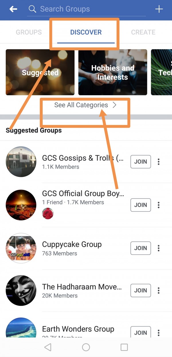 Finally you can see all kinds of categories of groups As shown in below picture.