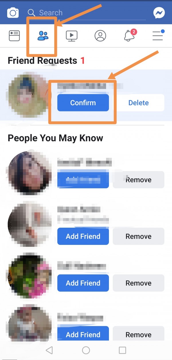 Usually when someone sends you friend request, you will get a notification. You can find this notification in your menu bar of faceook app. As for example, i have got a friend request and 2 options are with it.