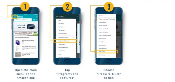 This is active in the form of an offer day, Install amazon app in your smartphone (android or iPhone). Then click three buttons on the top left, then tap Programs and features and then go treasure truck. To buy simply click buy this and choose your location.