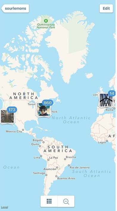 Whenever you add a location to an Instagram, the post is also posted to your photo map — a world map showing all the places you've posted a photo