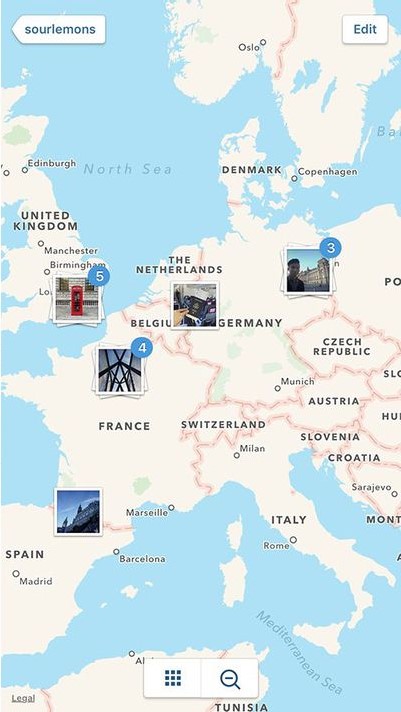 You can also see another user's photo map by tapping the same location tag icon on their profile. If a user hasn't posted any geo-tagged post, you won't be able to see their photo map. Or, if a user's account is private, only approved followers will be able to see it.
