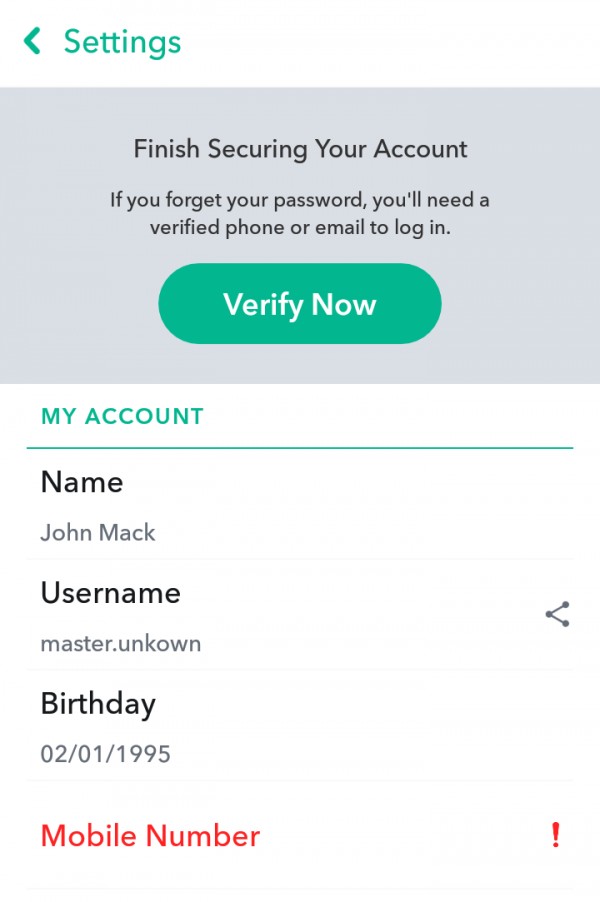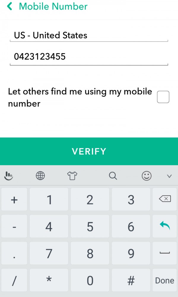 Open snpachat and click on top left iconClick on top right setting iconClick on Mobile NumberFirst you can slect your country and then Enter your number get a verification code on your number enter it or click on verify.Thanks