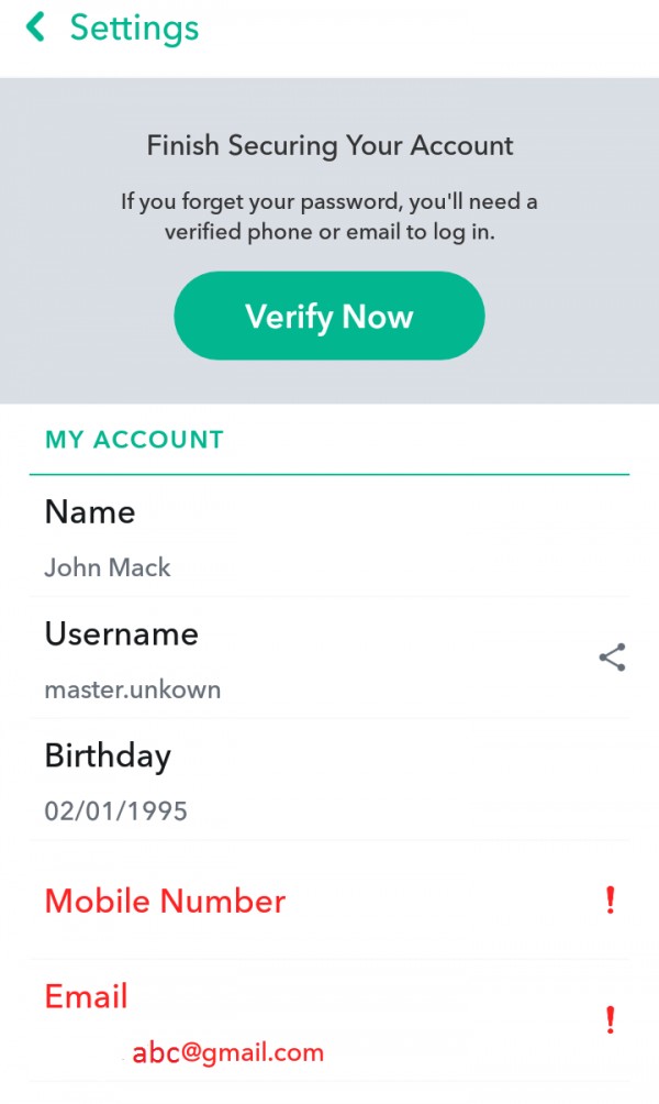 Open snpachat and click on top left iconClick on top right setting iconClick on EmailClick verfy and get mail on your email and verify on it.Thanks...