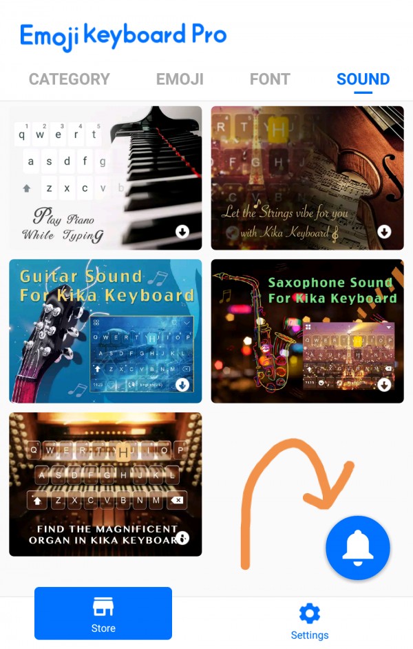There is an amazing feature available in kika app. You can change the typing sound according to your choice.