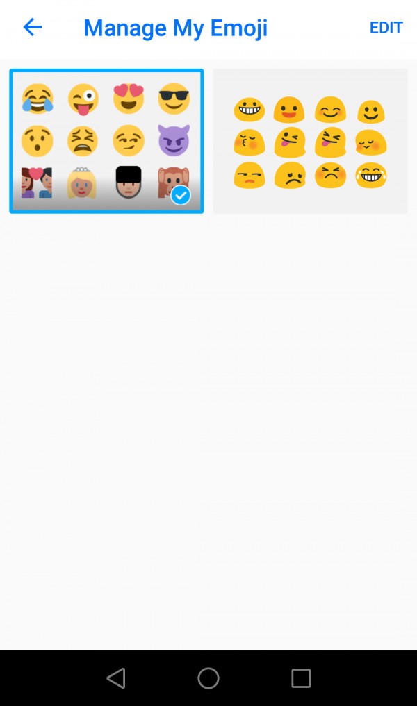 After that you can see available emojis in your kika app...edit them according to your choice..as you can see in the below image i have only 2 emoji styles available here...