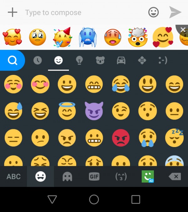 Open kika keyboard...and look at the bottom left...smili symbol is present..