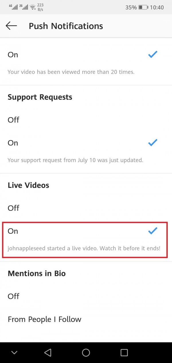 So you have to turn on this feature to get new live videos from your friends and celebrities.