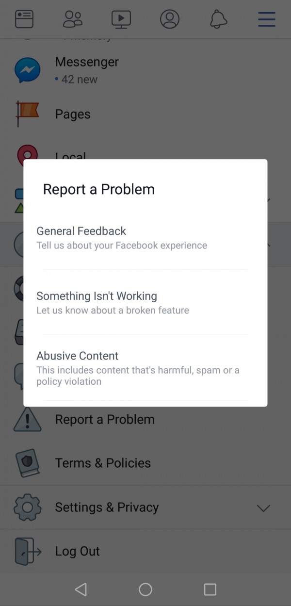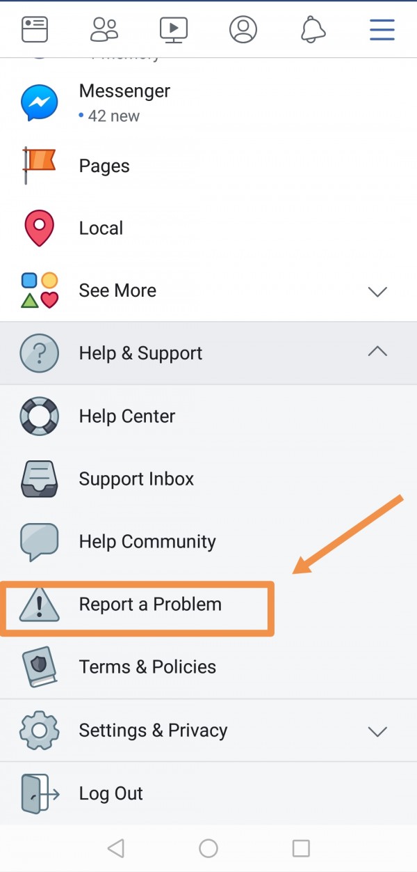 There may be a time when you want to report a problem on facebook. It can be related to any page, person or post. To report a problem, you first need to open facebook app in your smartphone and then go to the menu.