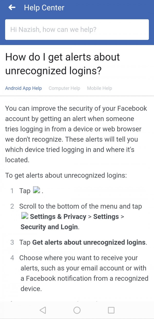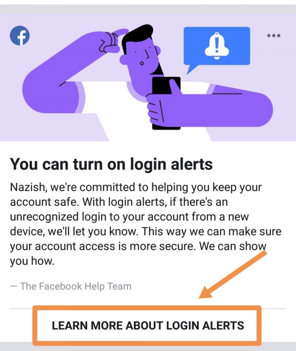 Facebook gives an important feature of login alerts. You can learn more details as shown in images below...