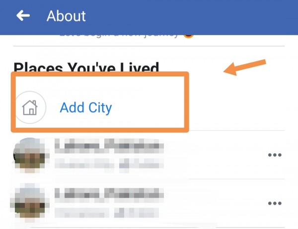Next you can see an option to add your city or places you have lived.