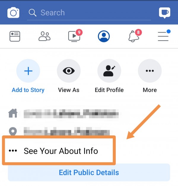 Open your facebook profile in app.