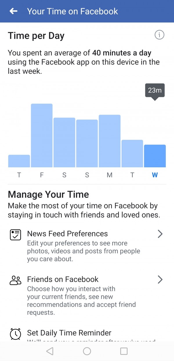 You can see the time you spend on facebook. It can be seen bg going to the menu of facebook app.