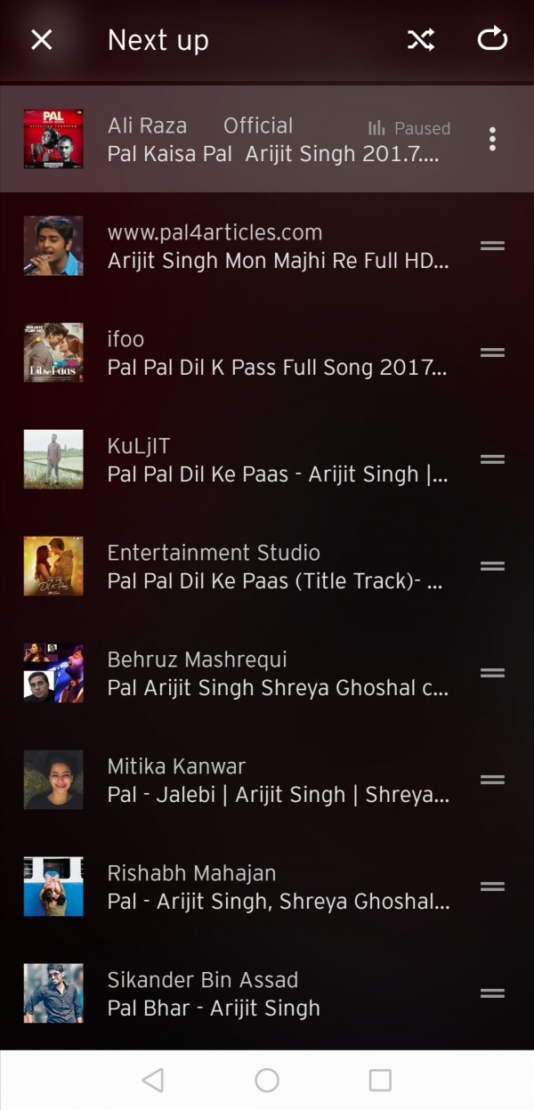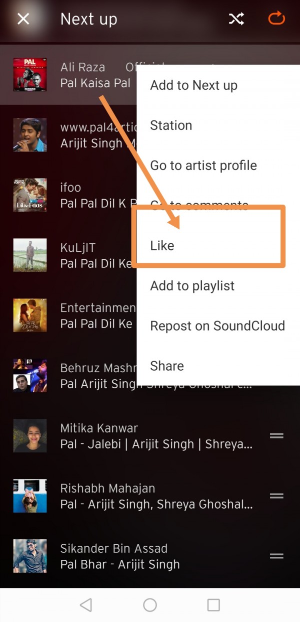 In front of any song, there are lines symbol. Click on it to perform the required action. Click on it.